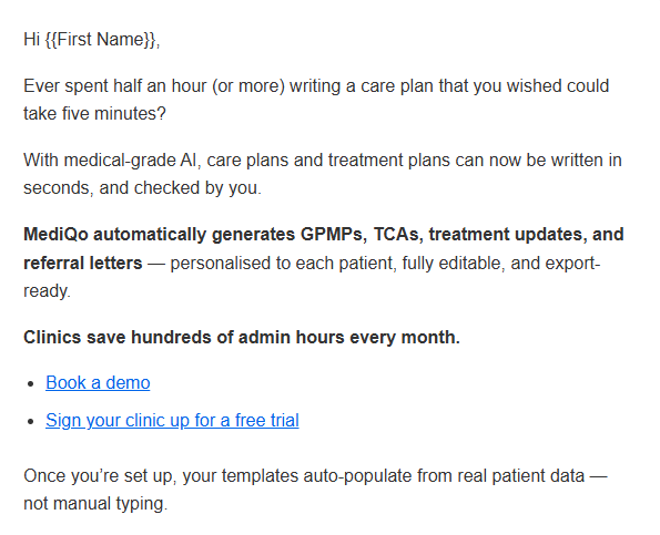 Share MediQo with your team. When care plans write themselves, your clinic runs smoother than ever.